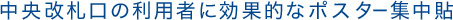中央改札前に設置された可動式サイン塔に掲出されるポスター集中貼です。